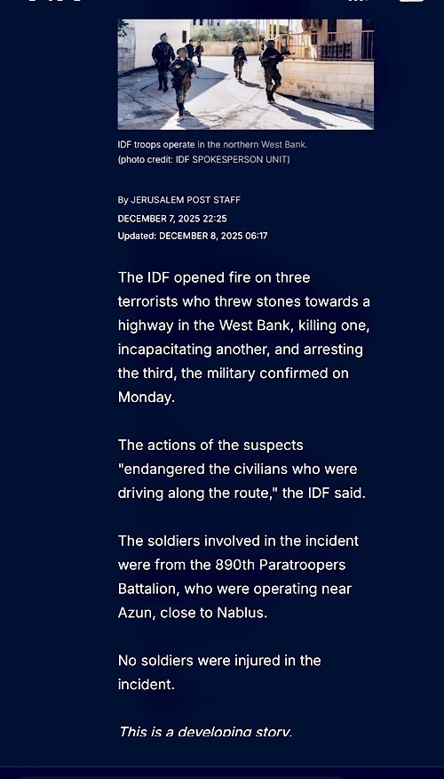 Arabs responded with car ramming at soldiers and stone throwing at civilians near Azun, near Nablus, both of which resulted in more Palestinian arrests and deaths.