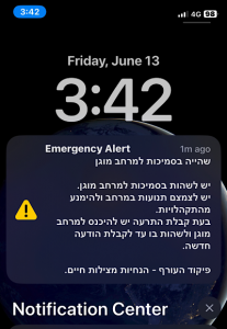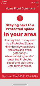 Apparently the battle is on, and so here in Samaria we can expect a lot more from Yemen, Iran, and who knows who else very soon. About 40 minutes after my two cats and I emerged from our bomb shelter, these alerts came through, signaling a general state of lockdown and alert for now – which could be days or weeks, depending.