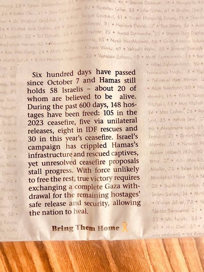 “Six hundred days have passed since October 7 and Hamas still holds 58 Israelis – about 20 of whom are believed to be alive…”