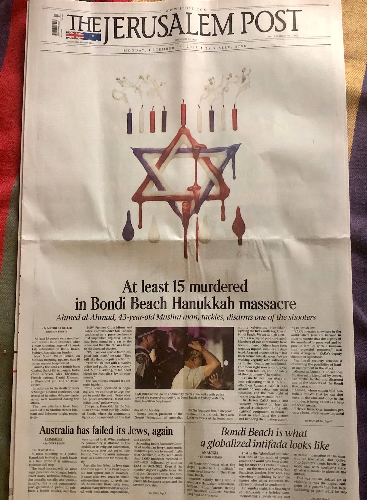 15 Dec 2025, Jerusalem Post pg 1. 15 Dec 2025, Jerusalem Post pg 1.