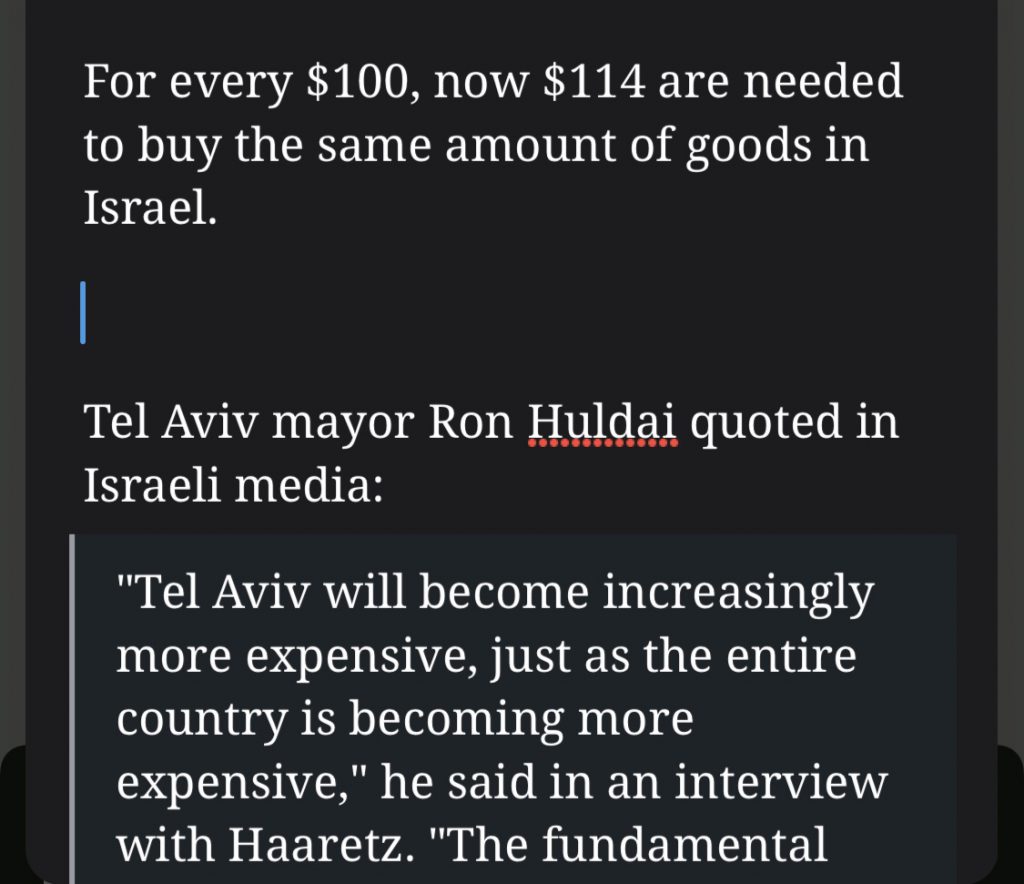 For every $100, now $114 are needed to buy the same amount of goods in Israel.