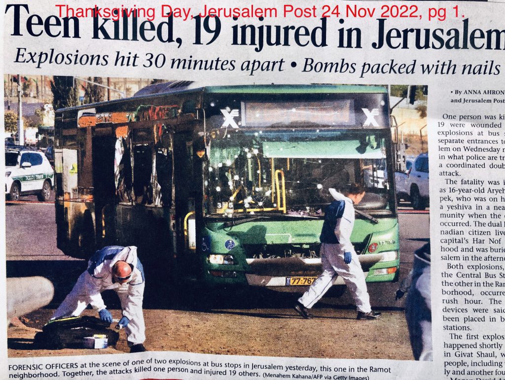 Thanksgiving Day, Jerusalem Post 24 Nov 2022, pg 1.