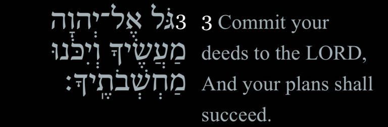 Here’s looking at Proverbs 16:3: “Commit your deeds to YHWH, and your plans shall succeed.”