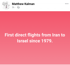 “My friend Matthew posted a meme declaring “the first direct flights between Iran and Israel since 1979.”